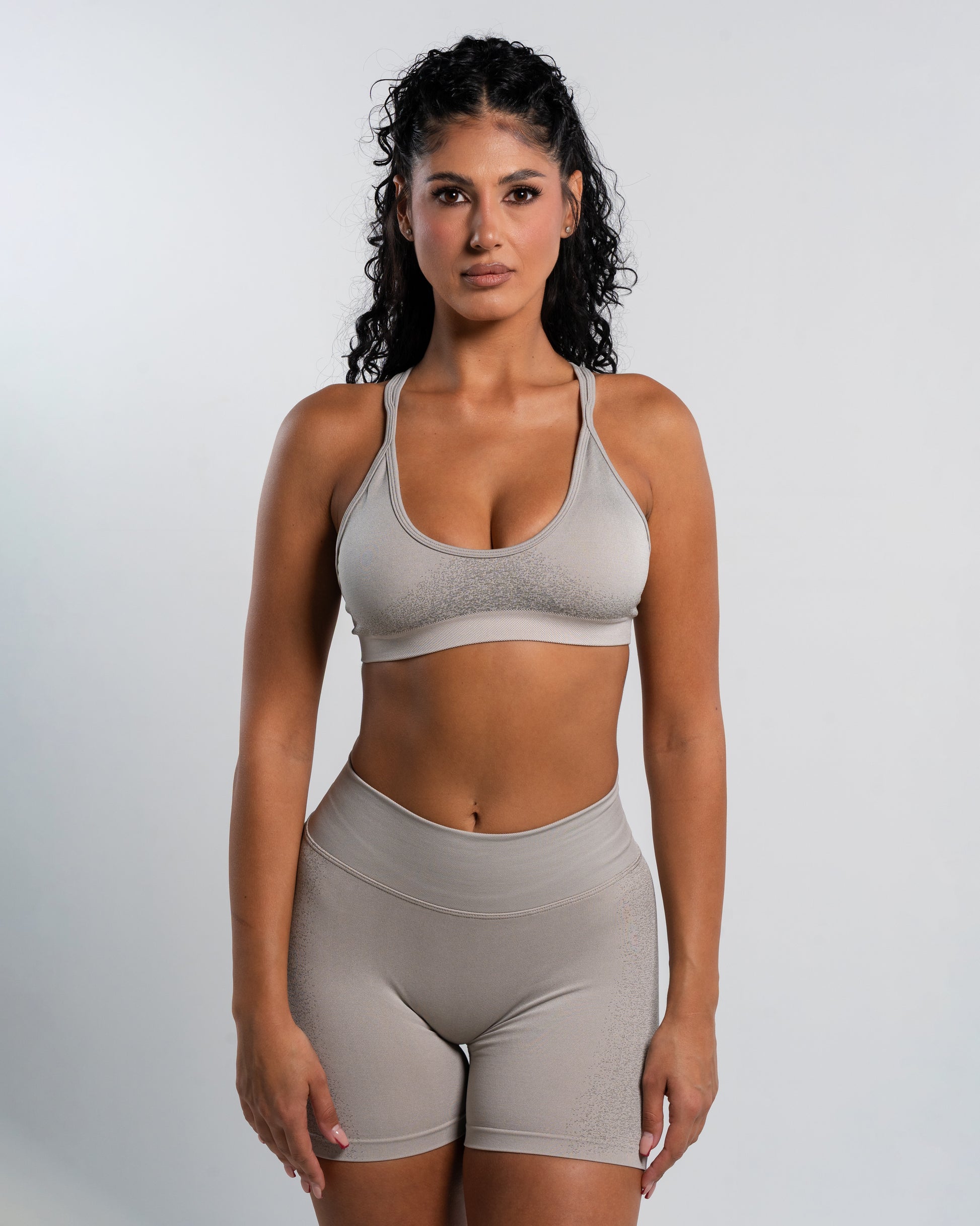 Ima diskretno ugrađene korpice koje se mogu izvaditi, pružajući ti nežnu podršku bez osećaja stezanja. Bretele su udobne i savršeno drže top na mestu, dok je kroj osmišljen da laska tvojoj figuri. Baš kao i helanke, top se adaptira tvojim oblinama.